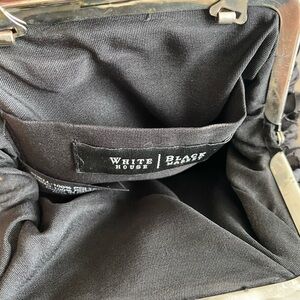 The Elegant White House Black Market Black Floral Motif Evening Clutch is a stunning accessory that combines sophistication with a touch of whimsy. Crafted from high-quality materials, this clutch features a sleek black exterior adorned with a delicate floral motif that adds a pop of visual interest. The intricate floral design is both modern and timeless, making it a versatile piece for any occasion, from formal events to casual outings.