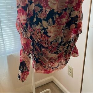Elegant White House Black Market Floral Blouse - Feminine Ruched Design Size XL