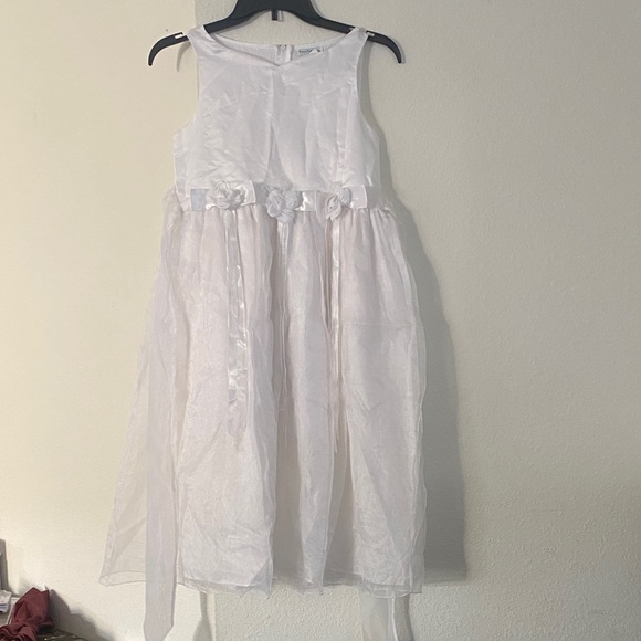 This elegant white kids dress is perfect for special occasions. Its delicate design and soft fabric ensure comfort and style.