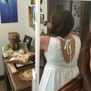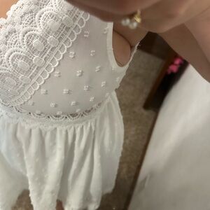 This elegant white lace dress is perfect for any occasion. Its intricate lace detailing adds a touch of sophistication and style.
