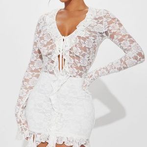 Experience elegance and comfort with this exquisite white lace sleepwear. Perfect for a luxurious night's rest.