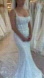 Stunning white lace wedding dress with intricate detailing. Perfect for a special day.