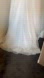 Stunning white wedding dress with lace details. Features an off-shoulder design and a flowing train.
