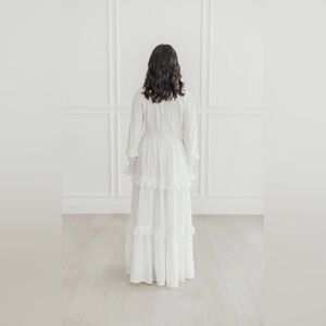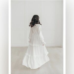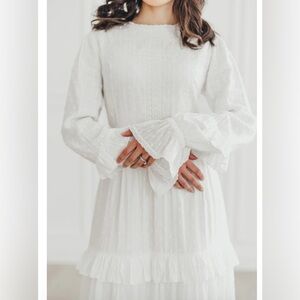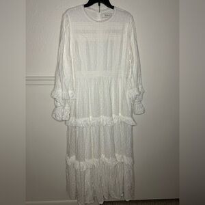 This elegant long sleeve dress features a flowing design perfect for any occasion. The crisp white color adds a touch of sophistication.