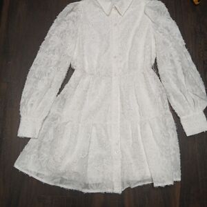 Step into elegance with this stunning white lace dress. Featuring long sleeves and a sophisticated design, it's perfect for any occasion. Not belt included.