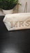Chic and stylish white toiletry/ makeup bag featuring 'MRS' in sparkling embellishments. Perfect for special occasions.