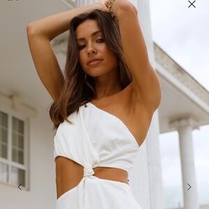 This elegant white one-shoulder dress is perfect for any occasion. Its unique design and flowing fabric offer a sophisticated look.