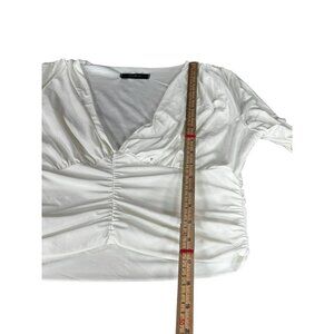 This elegant blouse features a plunging V-neckline and ruched detailing, offering a sophisticated look. Ideal for professional settings, it combines style with comfort, allowing ease of movement throughout your busy day. The long sleeves add a touch of formality, making it suitable for office wear.