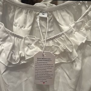 This elegant white blouse features charming ruffle details, perfect for any occasion. Its classic design offers a sophisticated look.