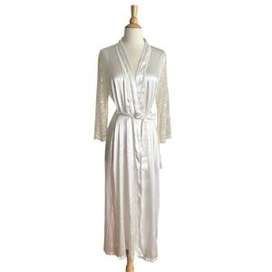 Luxurious white satin robe perfect for brides. Soft and comfortable, ideal for getting ready on your special day.