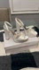 Chic white satin platform heels with ankle strap. Perfect for special occasions. Chunky Heel 4.3”. NEVER USED.