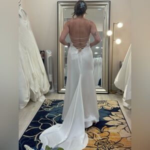 Bought for $700 at a wedding dress resell store- never worn by me. Ended up buying 3 different dresses and went with the other one🤣 still debating on if I want to wear this for my reception, so not in a hurry to sell. But open to reasonable offers!