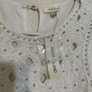 This elegant white sleeveless dress is perfect for any occasion. Its intricate design adds a touch of sophistication to your wardrobe.