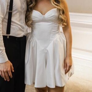 This elegant white strapless mini dress is perfect for any special occasion. Its chic design and flattering fit make it a must-have in your wardrobe.