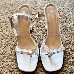 White BEBO high heel sandals with ankle strap. Only worn once for my wedding shoes. Best fits a size 7.5/8.