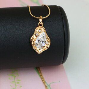 Shimmering white teardrop stone set in a flowing gold-plated frame, adding timeless elegance to any look.