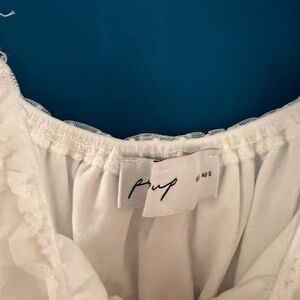 This elegant white tiered dress is perfect for any occasion. Its flowing design adds a touch of sophistication to your wardrobe. Perfect for a wedding rehearsal dinner or any type of bridal events. Worn once in perfect condition. CANNOT BE BUNDLED