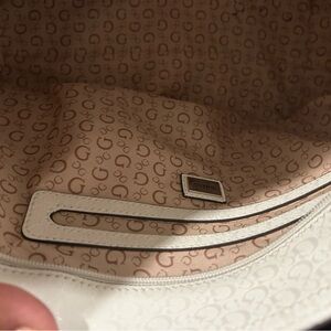 This elegant GUESS white tote bag is perfect for any occasion. Its sleek design and versatile color make it a must-have accessory.