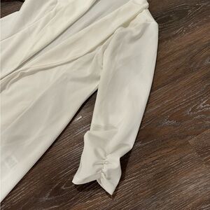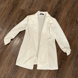 This elegant white blazer is perfect for any occasion. Its sleek design offers a sophisticated look, making it a versatile addition to your wardrobe.