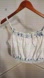This elegant white and blue smocked camisole offers a chic and comfortable style. Perfect for casual outings, it features adjustable straps for a tailored fit.