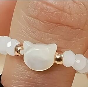 This elegant ring features a charming cat design in white and gold. Perfect for adding a touch of whimsy to any outfit.