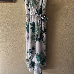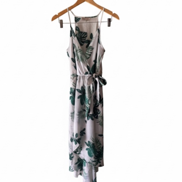 Step out in style with this elegant maxi dress featuring a beautiful green leaf print. Perfect for any occasion, this dress offers a flattering fit and a chic design.