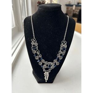 fairycore meets tribal with this stunning delicately wrapped wire necklace. Complete with pale blue acrylce crystals and what appears to be little chunks of lapis