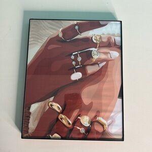 Chic framed art print showcasing elegant gold jewelry on hands. Some of the rings have real rhinestones for a touch of glam, A perfect touch of sophistication for your decor.