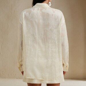 Elegant Women's 3d Flower Embellished Long Sleeve Blouse & Skirt set