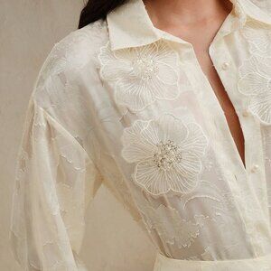 Elegant Women's 3d Flower Embellished Long Sleeve Blouse & Skirt set