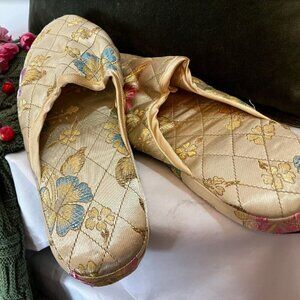 Elegant Women's Asian-Inspired Gold Embroidered Slippers Size 9 NWOT