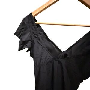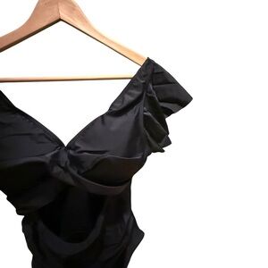 Elegant Womens Black Ruffled swimsuit with a cut out middle Size XL Beach