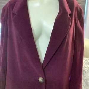 This Vintage stylish burgundy blazer is perfect for any occasion. Its rich color adds a touch of sophistication to your wardrobe.