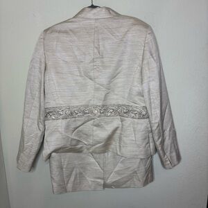 This elegant cream blazer is perfect for any occasion. Its sophisticated design and neutral color make it a versatile addition to your wardrobe.