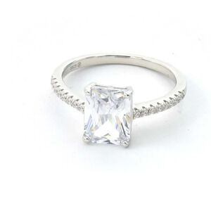 Elegant Women's Engagement Ring Emerald Shaped Cubic ZirconiaTimeless Sparkle