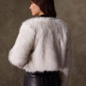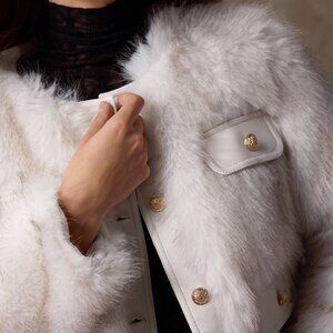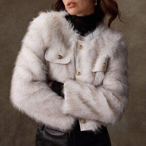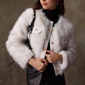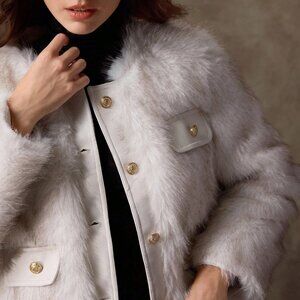 Elegant Women's Faux Fur w/ faux leather detail button down Coat jacket