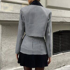 Elegant Women's Houndstooth Pattern Suit jacket & Pleated Skirt