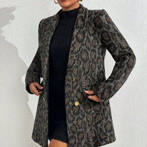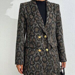 Elegant Women's Leopard Printed double breasted Blazer Jacket