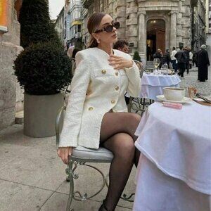 Elegant Women's Long Sleeve Metal Button Decor Jacket