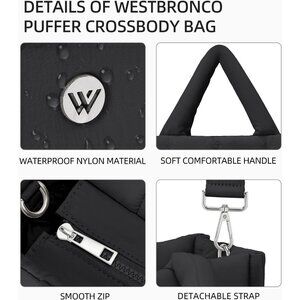 Features: High-quality nylon tote with thickened bottom padding and a four-sided puffer cotton filling for extra protection. Lightweight yet soft, water-resistant, and durable—feels like carrying a cushioned pillow. Spacious enough to fit your 12" laptop, umbrella, water bottle, and more. Multiple compartments and pockets help keep you organized: a back zipper pocket, main zipper compartment with mesh pockets, an inside zipper pocket, and a cup holder.