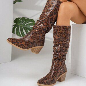 Elegant Women's Thick Heel Leopard Print Knee High Boots
