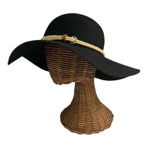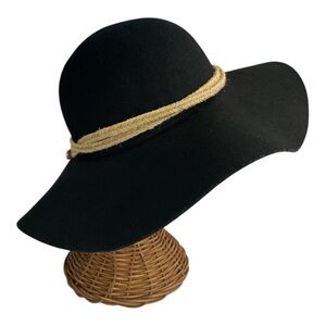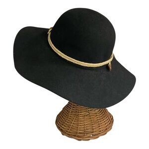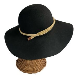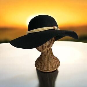 This elegant black wool floppy wide-brim hat is perfect for adding a touch of sophistication to any outfit. The classic design is complemented by a stylish band, making it a versatile accessory for any occasion.