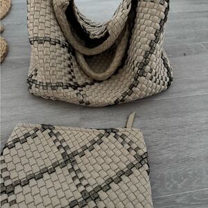 Discover the perfect blend of style and functionality with this elegant woven tote bag. Featuring a chic black and tan design, this bag is ideal for any occasion. Its spacious interior makes it perfect for daily use.