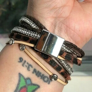 I am IN LOVE with these magnetic leather layered bracelets! Excellent quality, nice strong magnet, very sleek and gorgeous! I ship fast!