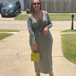 This elegant gray wrap dress offers a sophisticated look with its stylish design. Perfect for any occasion, it features a flattering fit and a chic tie waist.