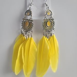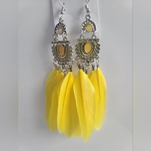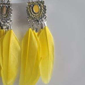 Elegant Yellow FeatherTassel Earrings French Hooks 12 cm Long
