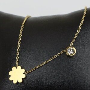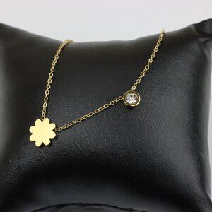 Dainty and timeless necklace crafted with a delicate flower charm and a sparkling stone accent.