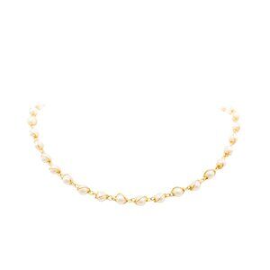 This necklace showcases a timeless design with its yellow gold-plated links delicately connecting lustrous faux white pearls. The 16-inch length offers a graceful fit, making it a refined accessory to complement any neckline. Ideal for those seeking sophistication in a lightweight yet stylish piece, it radiates charm and understated elegance.