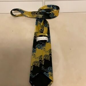 This sophisticated tie features a striking yellow and black color scheme, perfect for adding a touch of elegance to any formal ensemble. Crafted from high-quality silk, it offers a smooth texture and a refined appearance. Ideal for special occasions, this tie is a must-have accessory for a polished look.