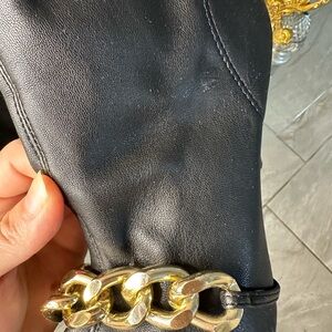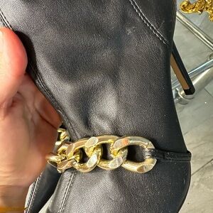 Elegant ZARA Black Heeled Boots with Gold Chain